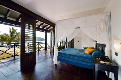 Lage: Im Osten der Insel, an der Anse La Farine gelegen und nur per Boot zu erreichen. Mehrmals tägliche kostenfreie Transfers von der Bay St. Anne, in nur 10 Minuten. Wunderbare Sicht auf La Digue und île Ronde.
