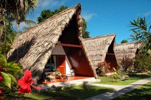 Die Chalets in Form eines A direkt am schönen Strand von Anse Reunon.